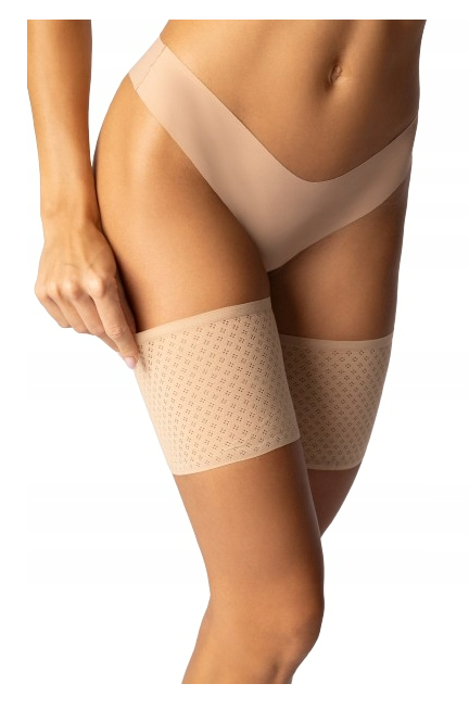 Opaski przeciw otarciom 02 to model oddychający, który będzie idealny na wyjątkowo ciepłe dni. Mikrodziurki pozwalają skórze oddychać, jednocześnie tworząc na opasce bardzo kobiecy wzorek. Opaski pięknie się układają, perfekcyjnie przylegają do ciała, dzięki czemu są wyjątkowo dyskretne. Dzięki dwóm odcieniom z łatwością dobierzesz opaskę do koloru skóry.