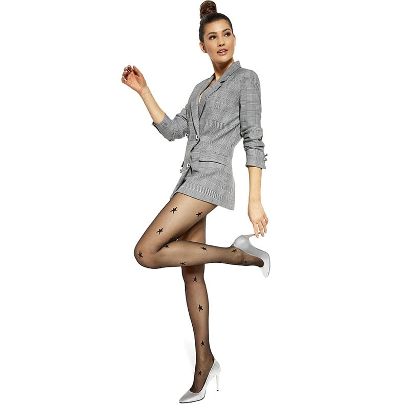 Modne rajstopy wykonane z przędz oplatanych najwyższej jakości.